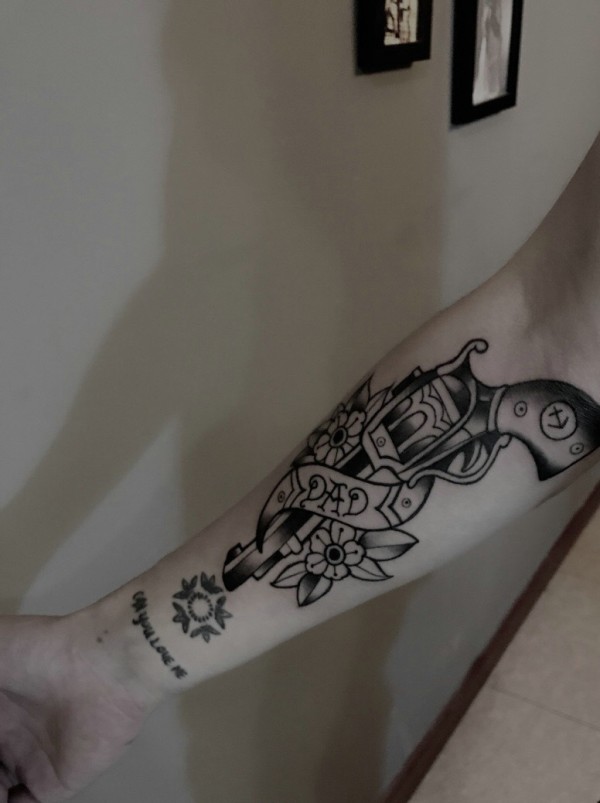 手臂一把水枪纹身图案有趣极了