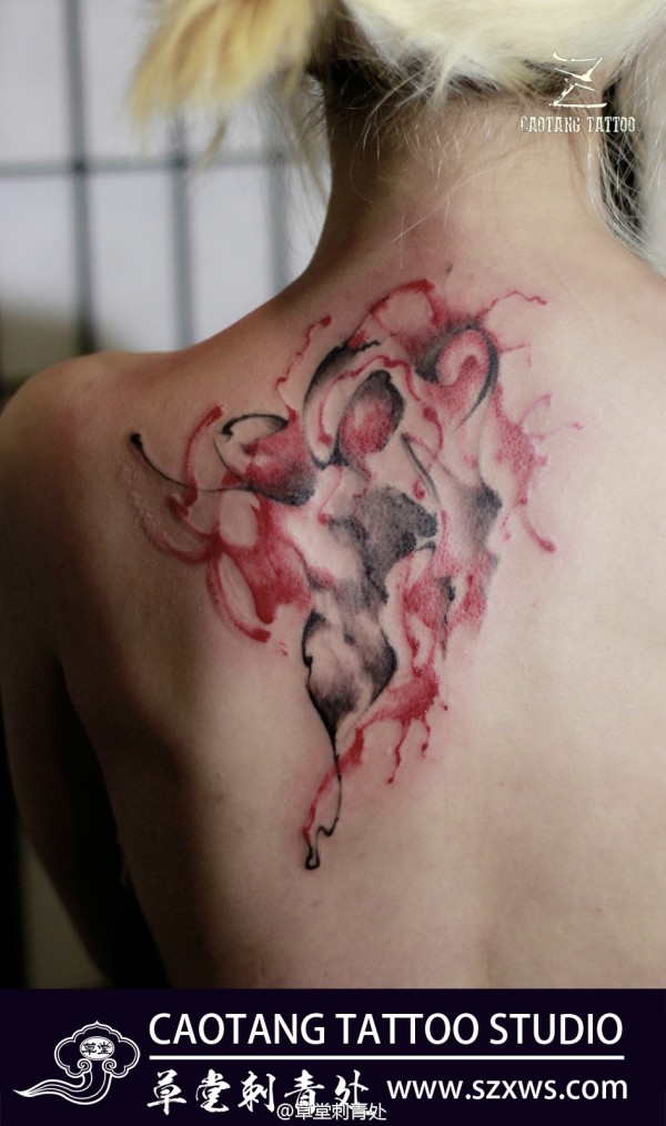 【泼墨·刺青】像红色火焰样的莲花,娇艳似火。
