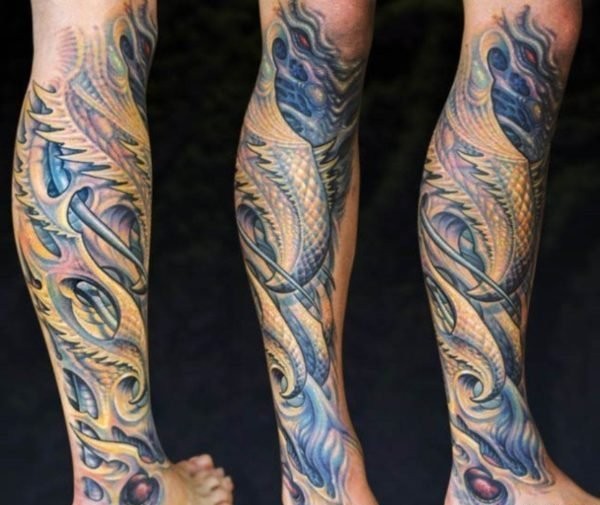 花腿纹身--一组大黑腿纹身图案作品欣赏