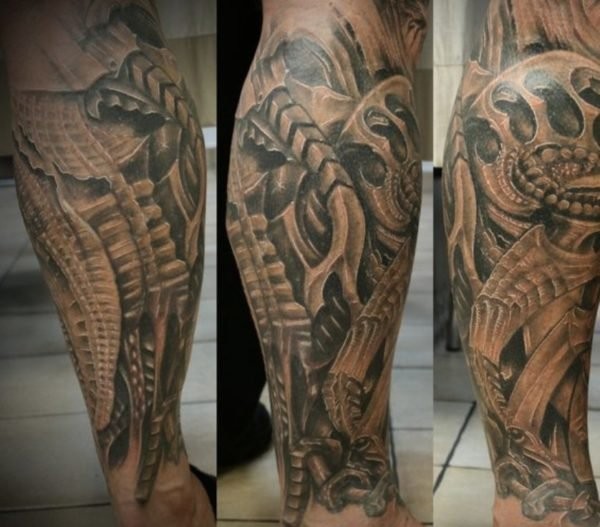 帅气的机械生物花小腿纹身图案