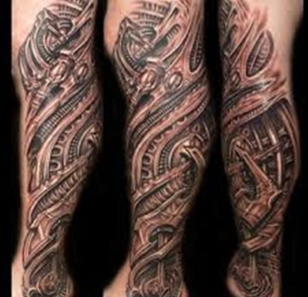 帅气的机械生物花小腿纹身图案