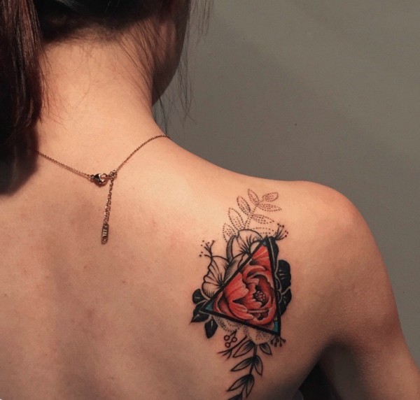 后背几何花朵纹身刺青很唯美