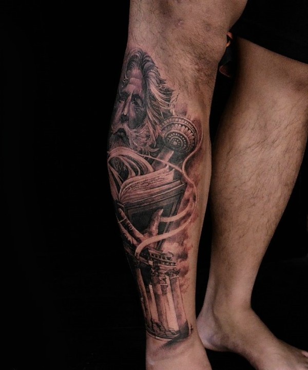 花腿纹身--一组大黑腿纹身图案作品欣赏