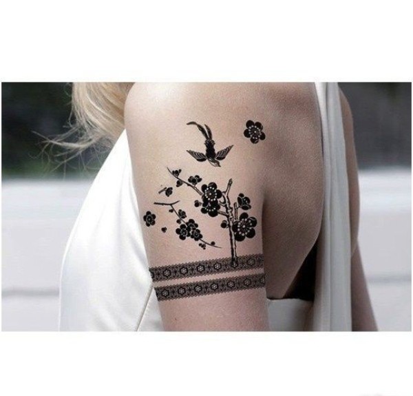 女性手臂上漂亮的臂环纹身图案