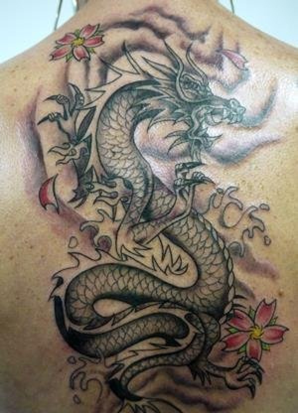 龙纹身手稿_一组老传统黑灰龙手稿纹身图案