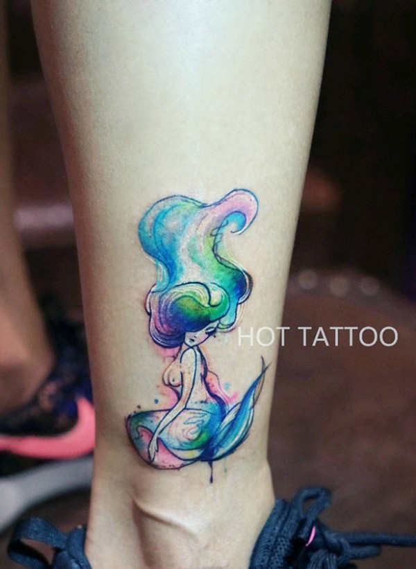 人鱼之歌,脚踝美人鱼唯美彩绘纹身