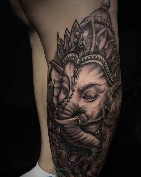 手臂黑灰象神_一组12张手臂上的黑灰象神纹身图案作品欣赏