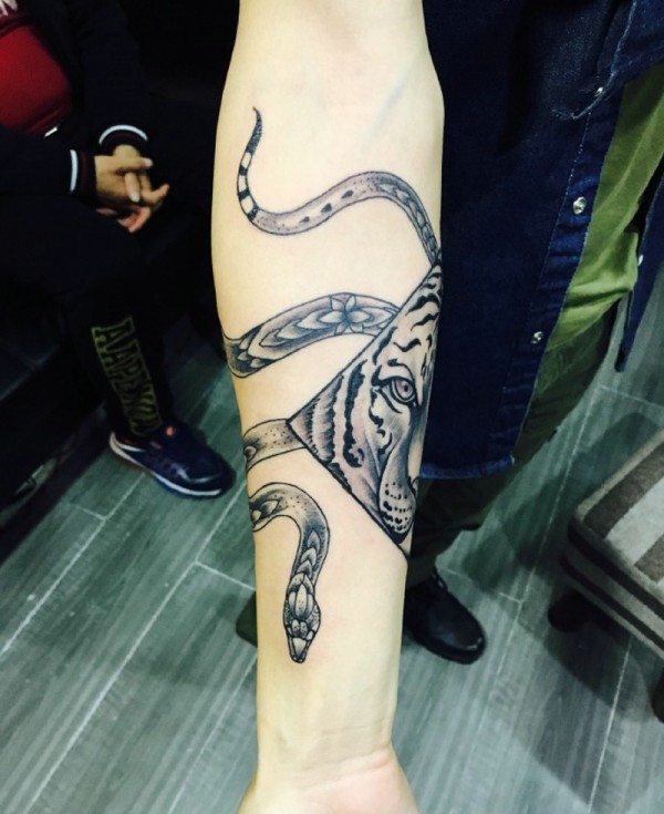 手臂莲花蛇纹身图案_臂部纹身图案大全_纹身图吧