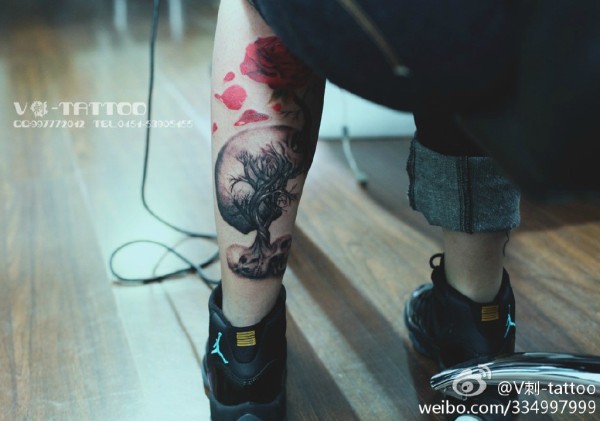 女生手臂经典潮流的骷髅与玫瑰花纹身图案