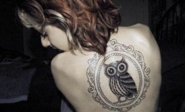 女生后腰纹身黑白灰风格抽象线条纹身图案