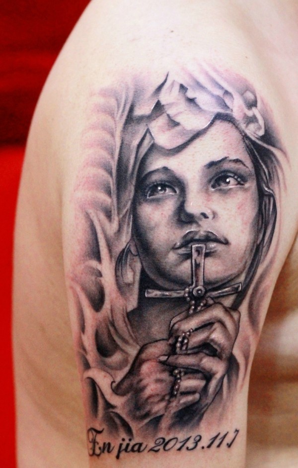 女性肩部肖像刺青_肖像纹身图案大全_纹身图吧
