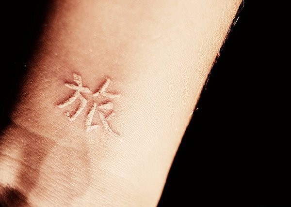 手臂上个性的白色隐形纹身图案
