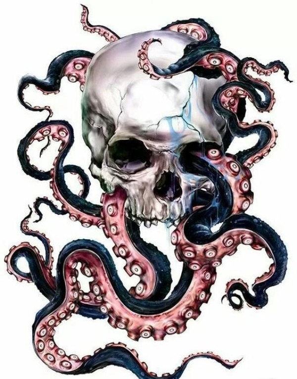大章鱼骷髅头纹身图案手稿素材