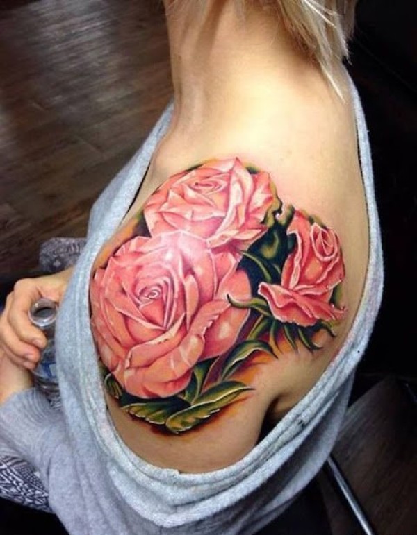女孩身上漂亮的玫瑰花纹身图片