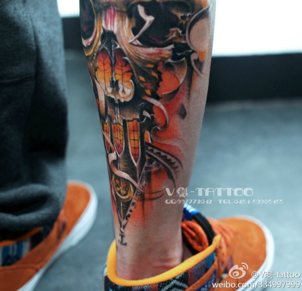 男生小腿死神纹身_腿部纹身图案大全_纹身图吧