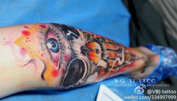 花腿纹身--一组大黑腿纹身图案作品欣赏