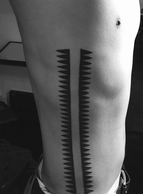 女生后腰纹身黑白灰风格抽象线条纹身图案
