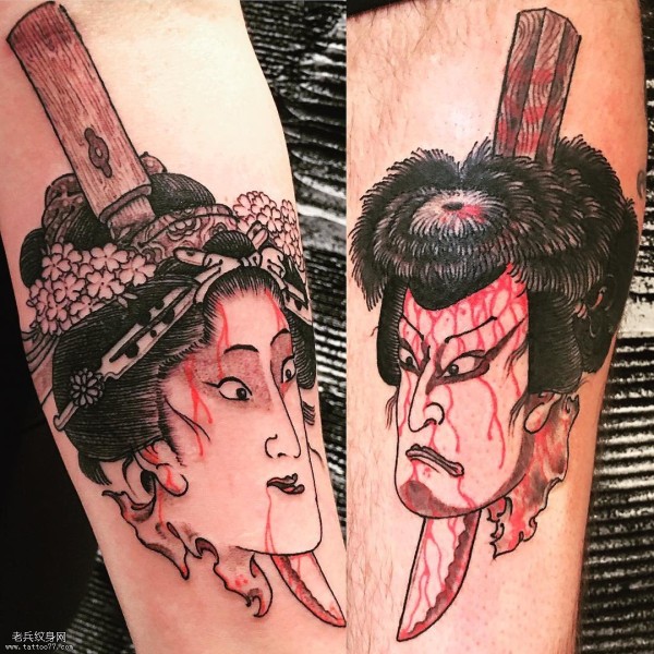 能面万媚纹身手稿_52张日式能剧面具纹身手稿图案素材欣赏