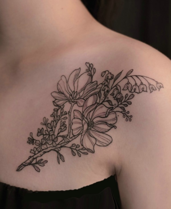 后肩唯美花藤英文图案图片_植物纹身图案大全_纹身图吧