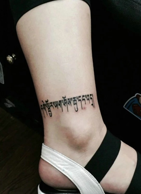 围绕脚腕一圈的时尚梵文纹身图案