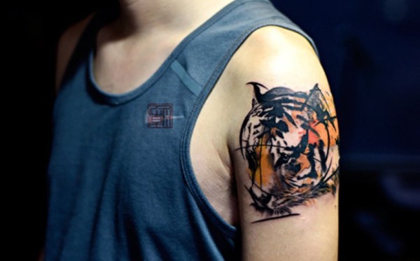 霸气半胛老虎纹身_动物纹身图案大全_纹身图吧