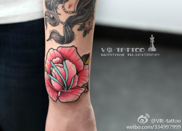 欧美玫瑰纹身 男生手臂上花朵纹身图片