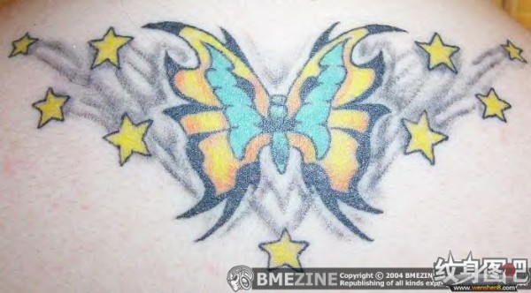 冒金星的黄色蝴蝶纹身