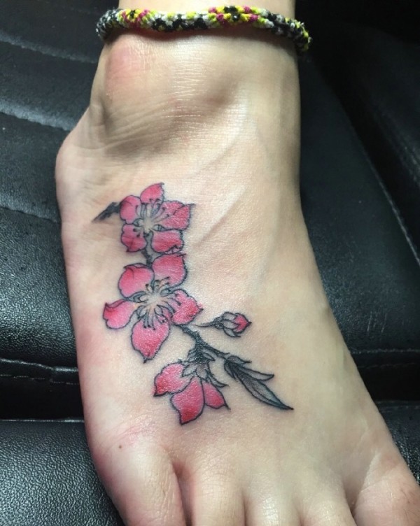 清新小桃花脚踝纹身_脚部纹身图案大全_纹身图吧