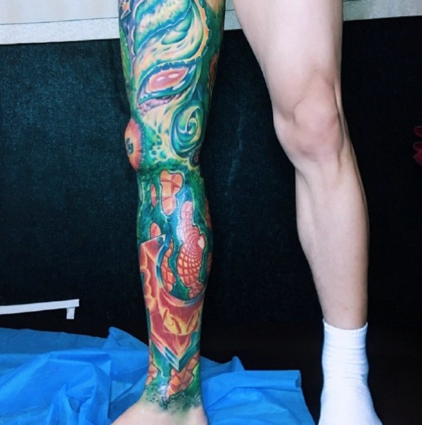 非常重口味的满小腿纹身图案