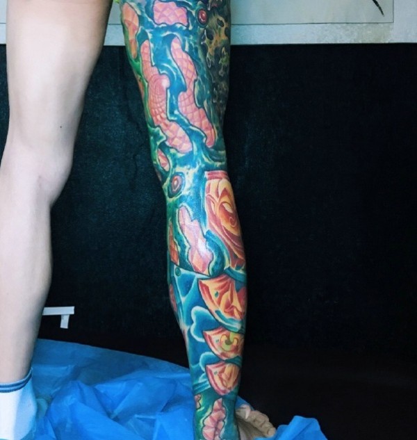 传统花腿纹身--18张传统风格的大花腿纹身图案作品