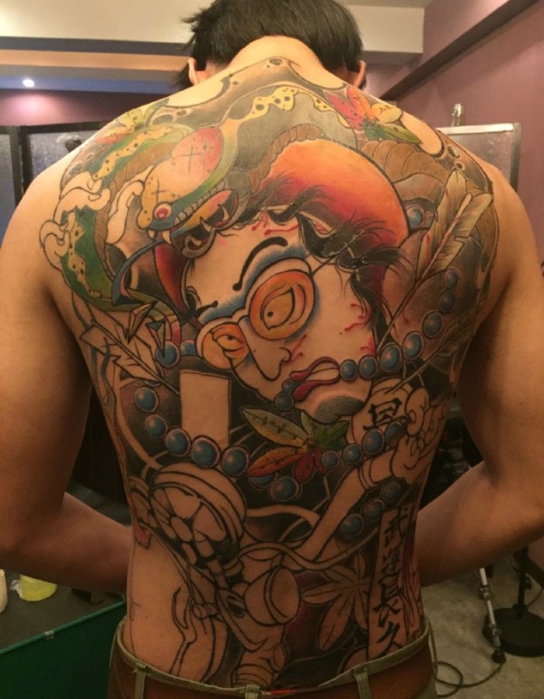 一款重口味彩色满背纹身图案