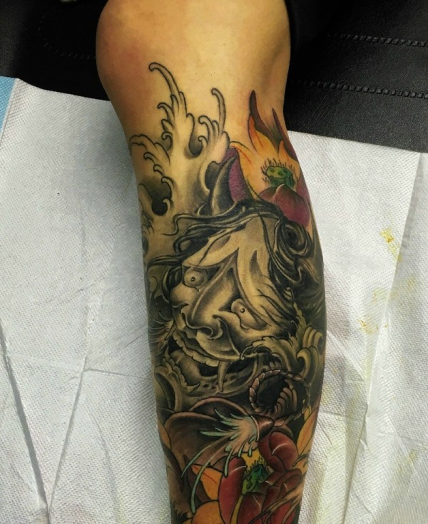 花腿纹身--一组大黑腿纹身图案作品欣赏