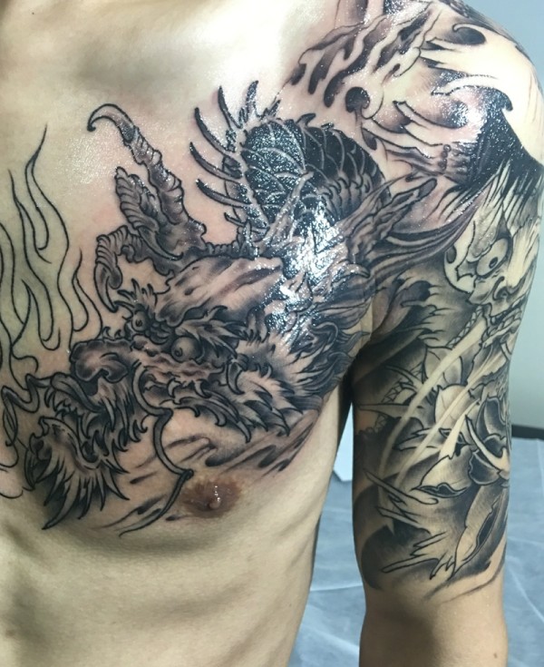 日式手彫刺青作品—半甲龙很感谢客户认可手彫刺青,手彫是日本纹身的手工雕刻技术,时间可以追溯到日本17世纪的江户时代。19世纪,手彫技术被日本黑帮挪用,被用作入会仪式,象征着从此就是江湖中人。在日式传统