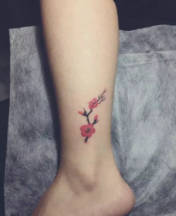 小腿处小清新自然的小花朵纹身图案