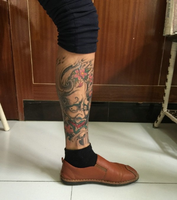 日式风格的传统花腿纹身作品欣赏