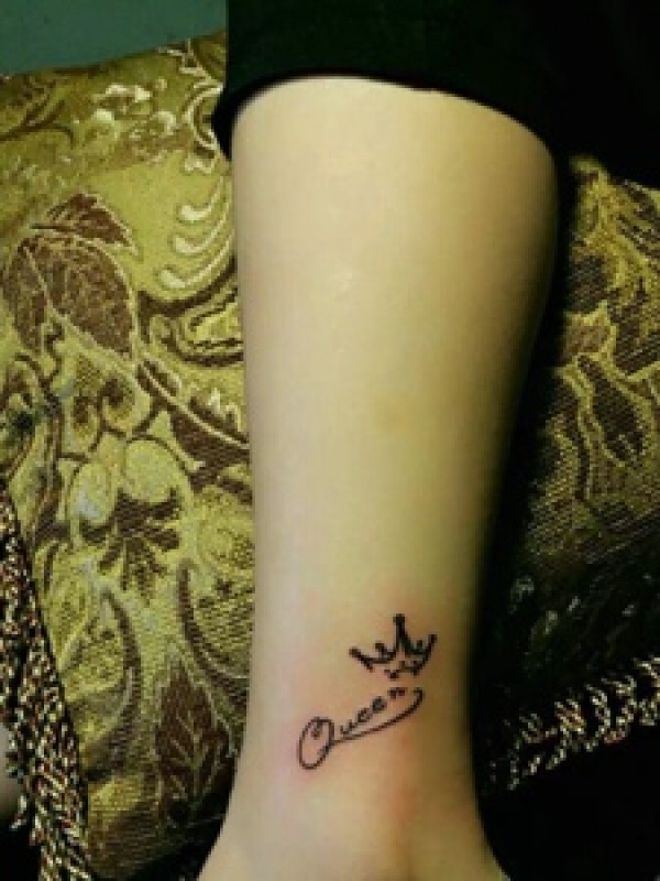 皇冠与英文结合的腿部纹身图案