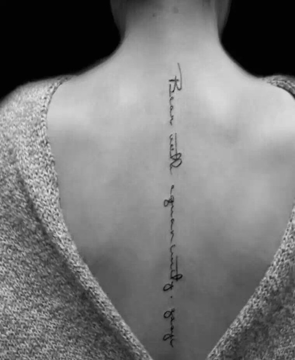 时尚女孩脊椎部小清新英文纹身图案