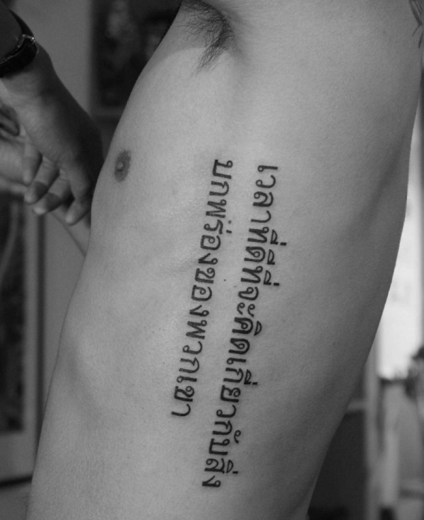 女生后腰纹身黑白灰风格抽象线条纹身图案