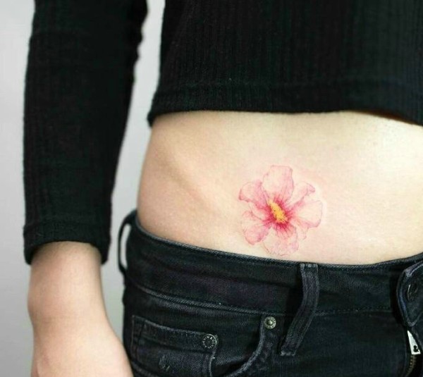 遮盖疤痕的腹部上花瓣纹身图案