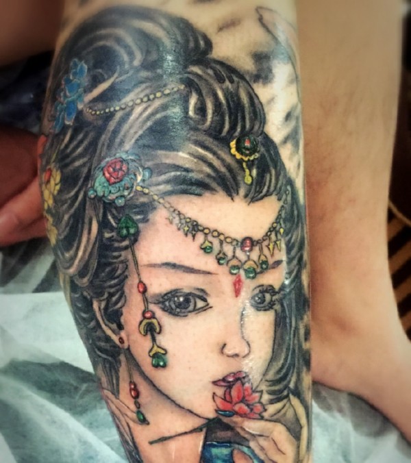 传统花腿纹身--18张传统风格的大花腿纹身图案作品
