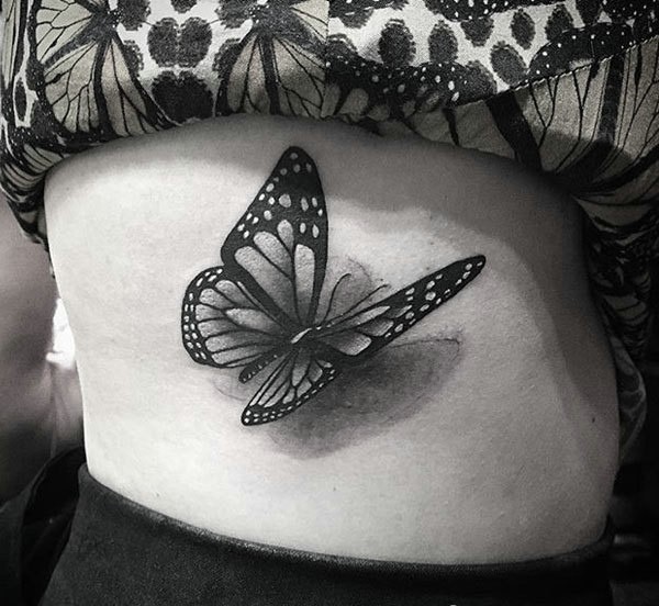 腰部停留着一只漂亮的3d蝴蝶纹身图案