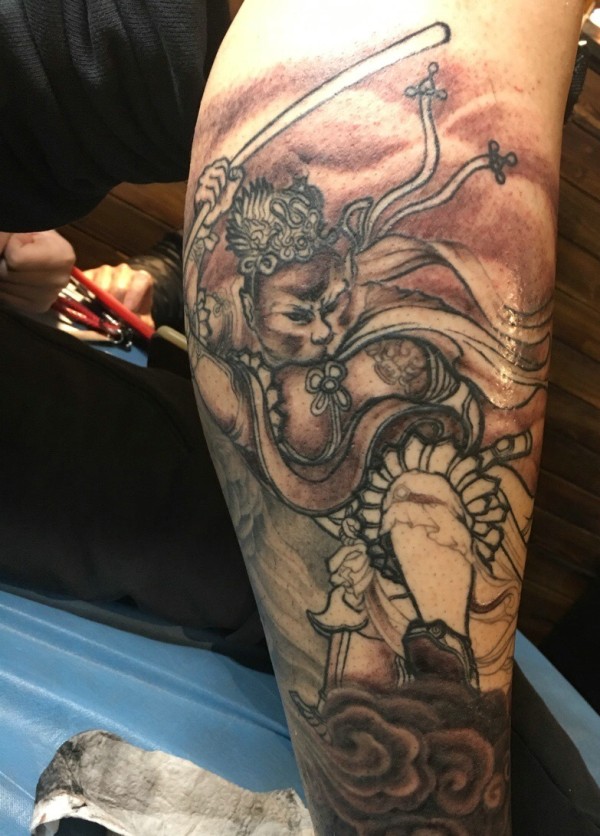 小腿处一只任性的美猴王纹身图案
