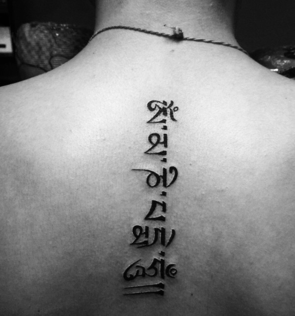 脊椎部个性简陋的梵文纹身图案