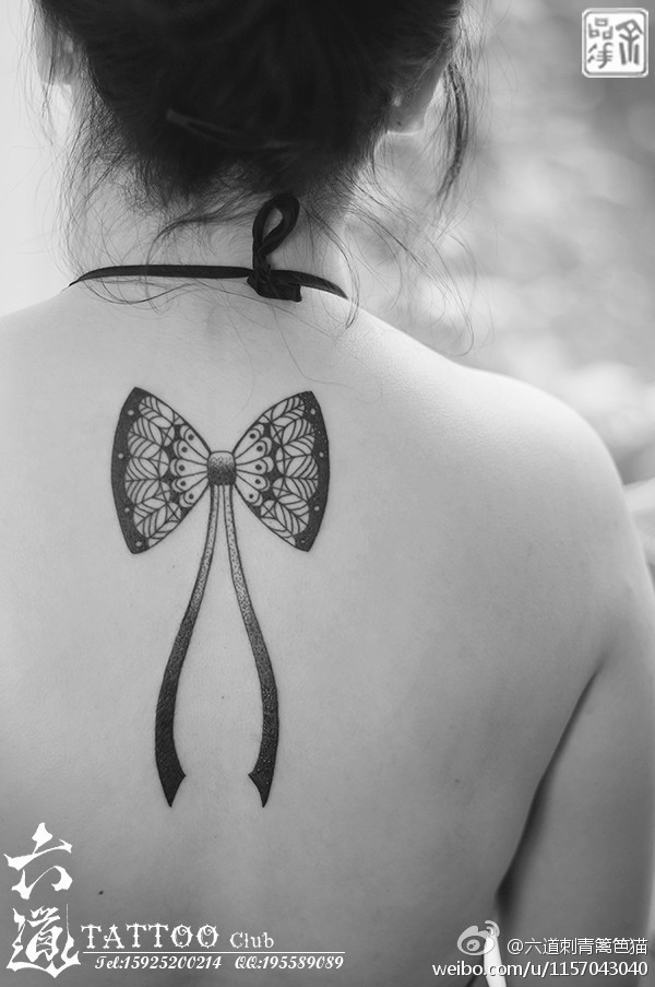 女生后腰纹身黑白灰风格抽象线条纹身图案