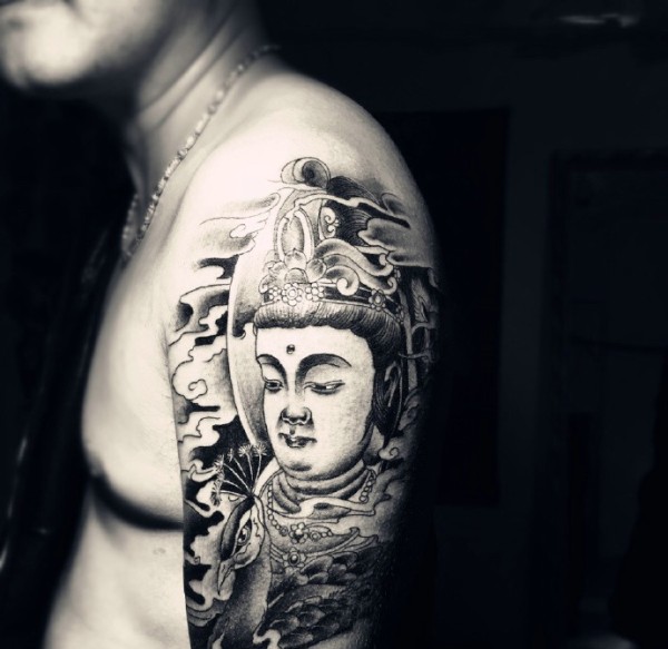手臂老传统黑白佛像纹身图案