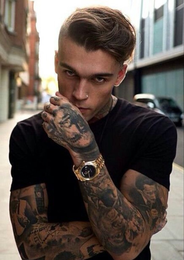 欧美花臂纹身_22张霸气黑灰欧美大黑花臂纹身图案作品图片