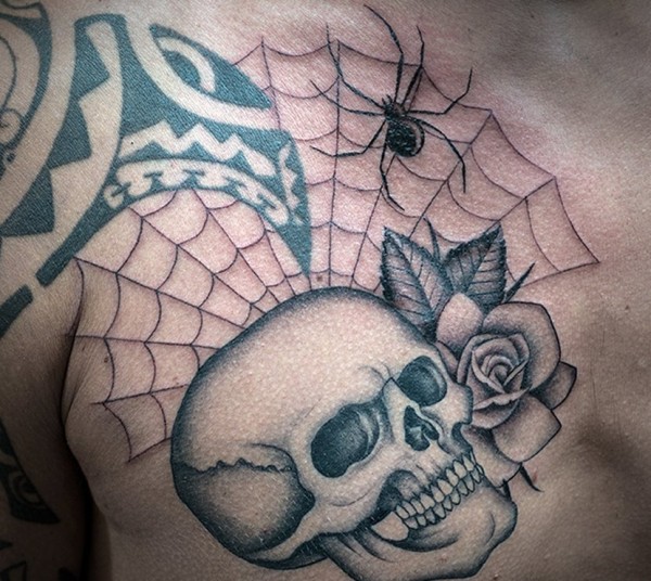 恐怖的骷髅蜘蛛纹身图案