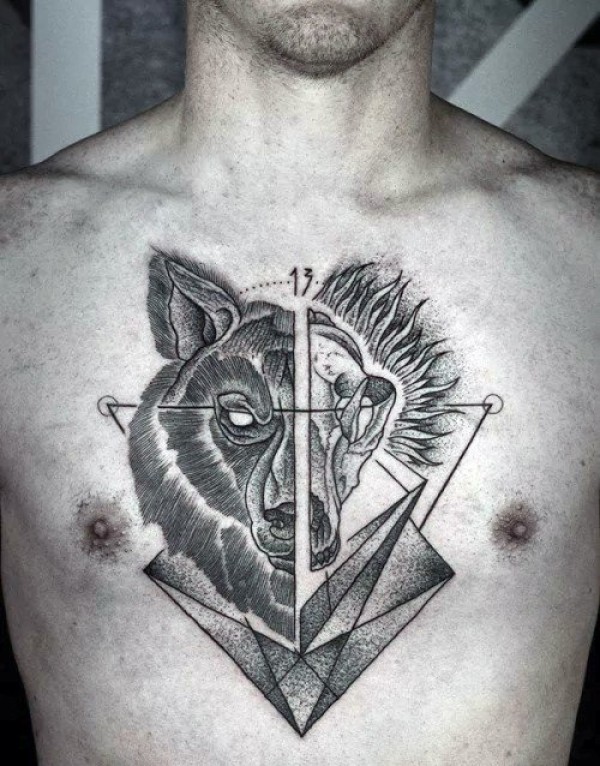 男性霸气的满胸狼纹身图案