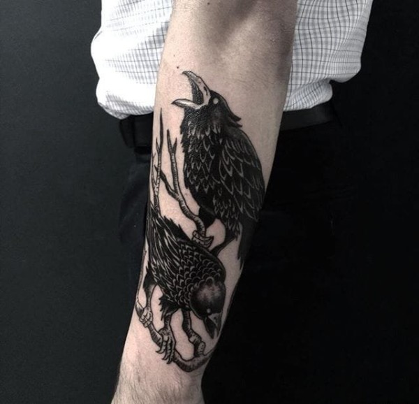 多款纯黑色风格点刺乌鸦纹身图案