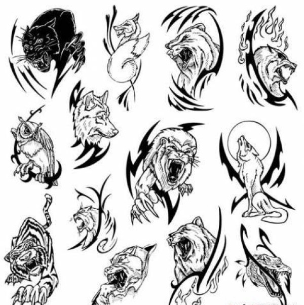 一组18张漂亮的欧美newschool动物纹身手稿图案